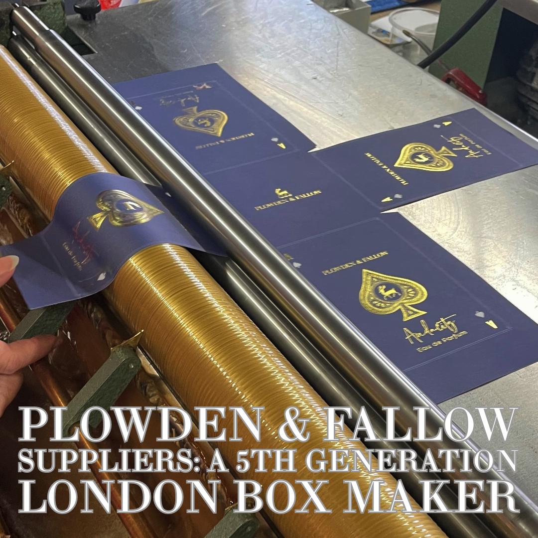 Speaking about our relationship with MacCarthy and Sons, James MacCarthy said “We as a team have hugely enjoyed working with Plowden & Fallow on their perfume packaging. It felt good to be working alongside a like-minded business with a similar attention to detail and who valued our family business and traditional processes in order to produce some lovely boxes. Working on Plowden & Fallow's stunning packaging, which catches eyes throughout the factory and our visitors, is always a joy."